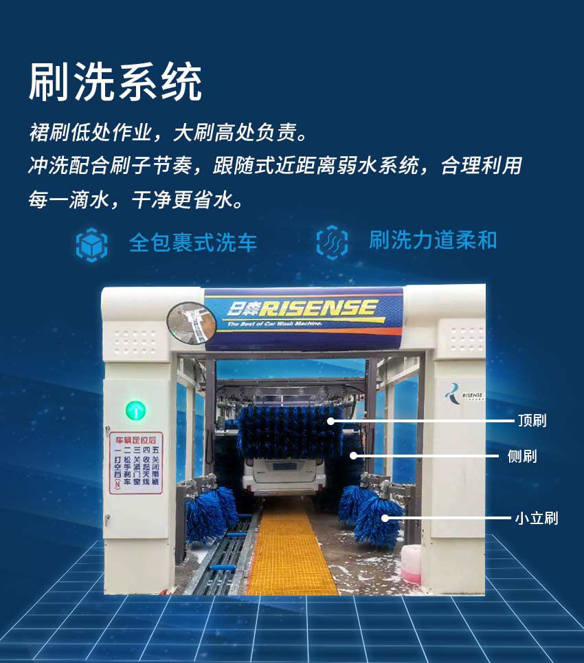 本款設(shè)備堅固耐用,外觀兼顧國內(nèi)外客戶的喜愛,對場地適應(yīng)能力強,各種性能出色,是國內(nèi)外裝機量較大的一種隧道式洗車設(shè)備。
